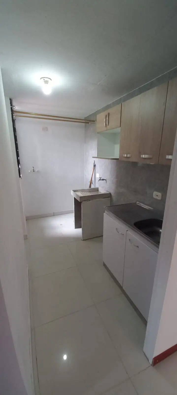El apartamento consta de sala comedor, cocina integral, zona de lavandería, baño y tres habitaciones.