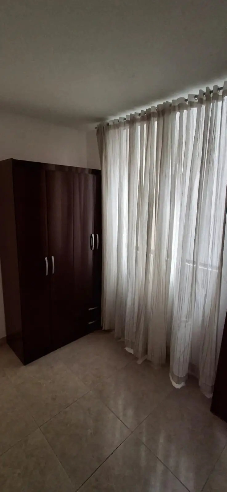El apartamento consta de sala comedor, cocina semi integral sin estufa, zona de lavandería, baño y tres habitaciones, dos con clóset.